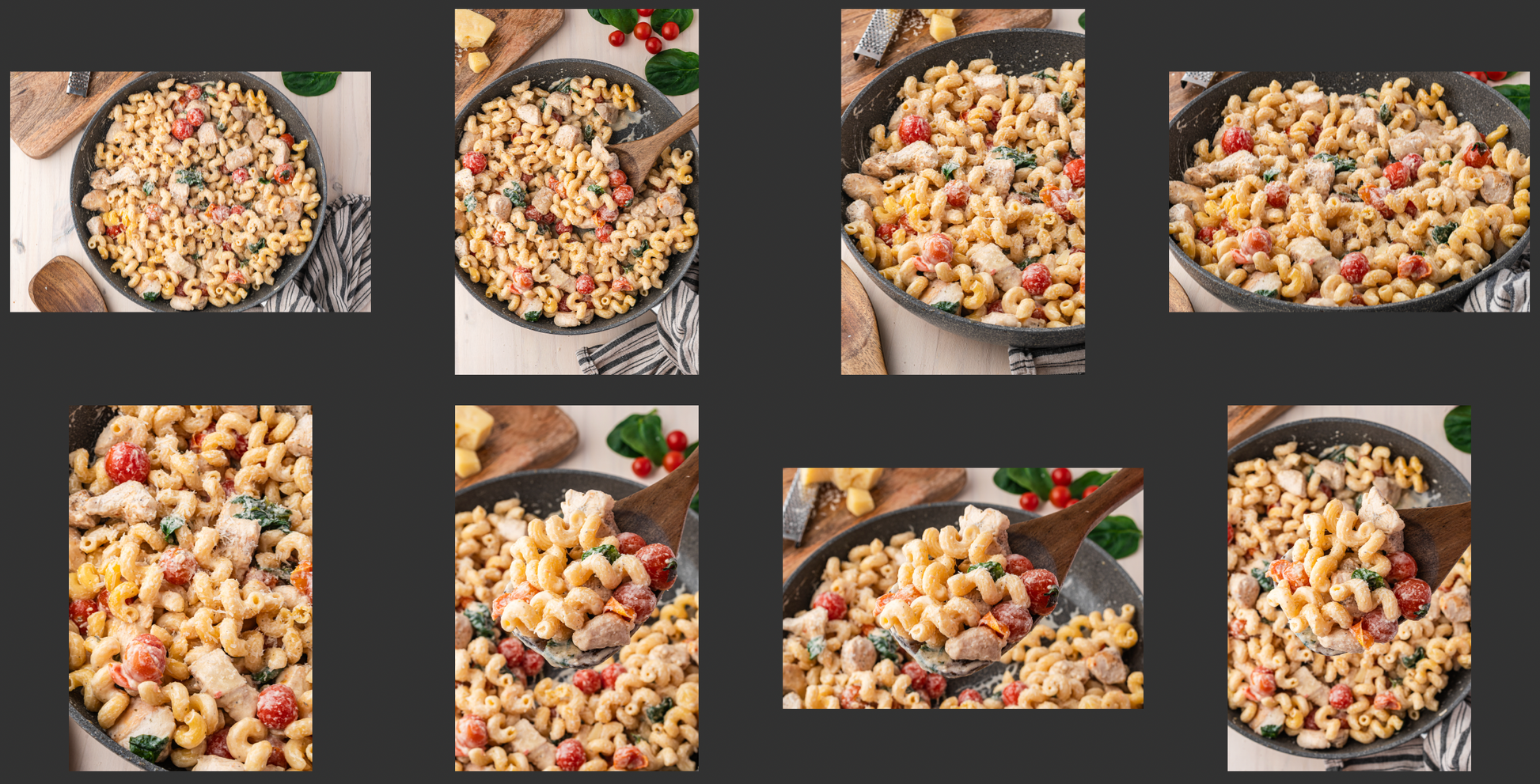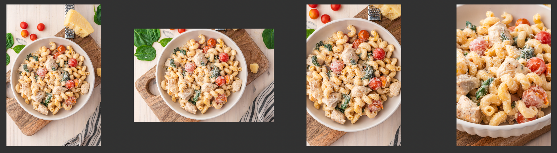Key Ingredients: chicken breasts, Boursin cheese, cellentani pasta, cherry tomatoes, spinach, chicken broth, garlic, salt, pepper, Parmesan cheese, lemon juice