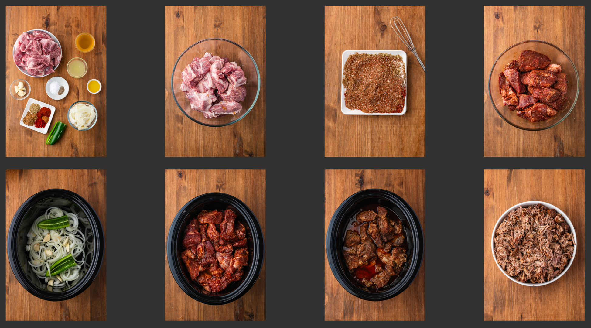 Key Ingredients:   pork shoulder, cumin, chili powder, kosher salt, pepper, olive oil, smoked paprika, oregano, cinnamon, onion, garlic, jalapeño, limes, chicken broth, cilantro